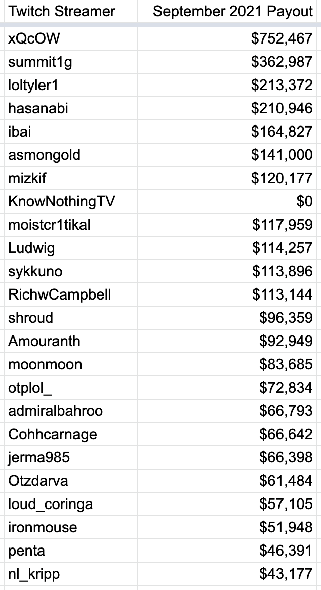 The data shows that last months most watched streamer Felix xQc Lengyel earned over 750000 from Twitch in September alone. The hacker took more than 125 gigabytes. Amazon officially buys Twitch for 970 million will keep it independent.